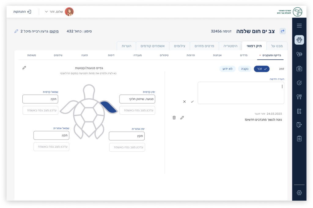 וטרינרים – גישה מלאה למידע רפואי ותיעוד טיפולים, כולל הזנה של טיפולים תרופתיים והנחיות.
