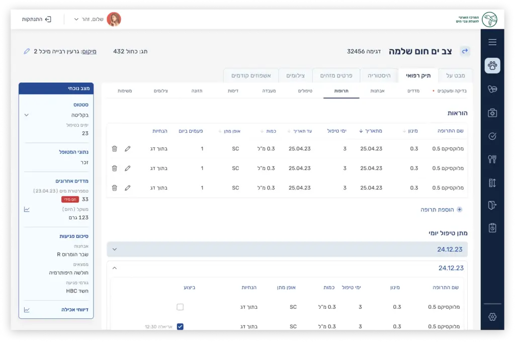 מנהלים – דשבורד למעקב אחר סטטיסטיקות, ניהול צוותים וניהול לוגיסטי (תרופות וציוד).