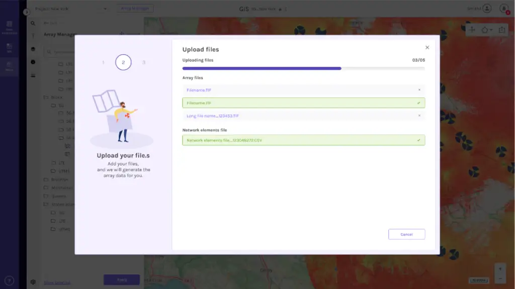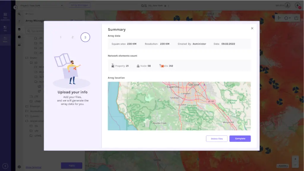 הפרויקט עסק בפיתוח אשף ייעודי להוספת אזורים חדשים ונתוני כיסוי, כחלק מתהליך כולל לניהול והצגת נתונים על גבי מפות. מטרת האשף הייתה לפשט את תהליך הוספת הנתונים תוך התאמה לצרכים הייחודיים של המשתמשים, מהנדסי רדיו, שעובדים לרוב עם תוכנות מורכבות ומיושנות. האשף נועד לשפר את חוויית המשתמש, למנוע טעויות בהעלאת הנתונים, ולהבטיח דיוק מירבי בתהליך העבודה.